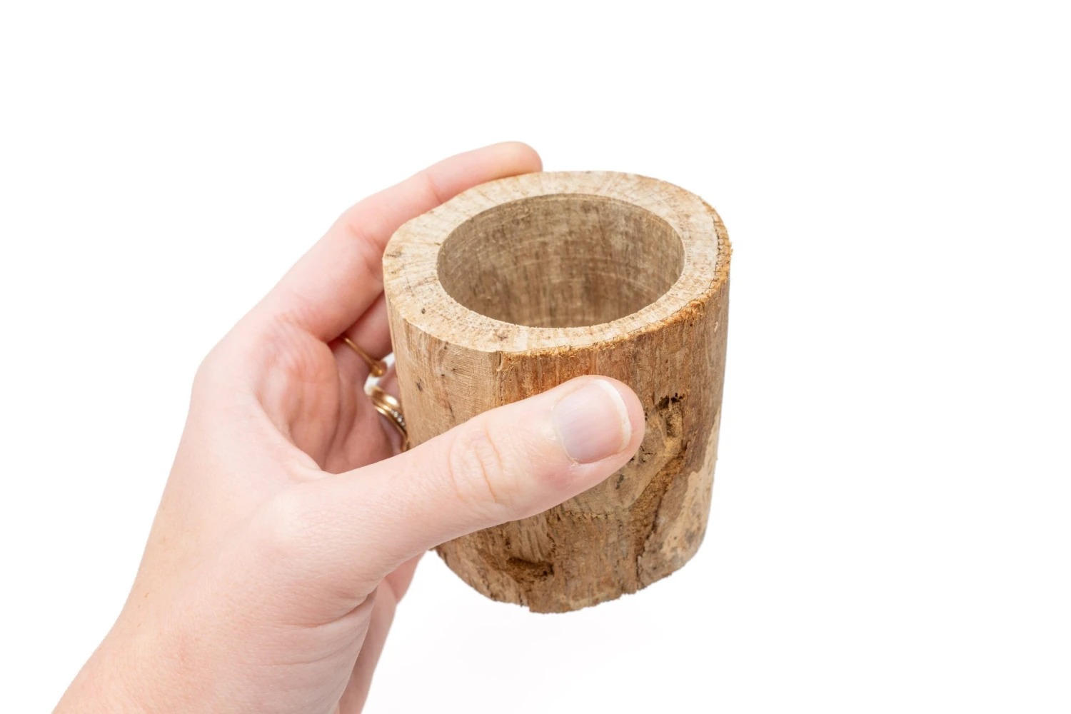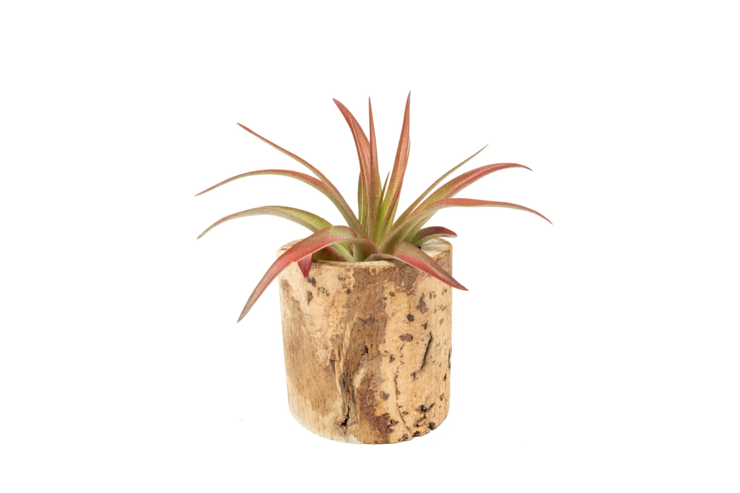 Our hand-carved driftwood containers are made from sun-bleached wood stumps and are a beautiful container for many of our medium to large sized air plants. There are some cracks and imperfections in the wood as every piece is unique.